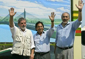 After Lula and Mesa inaugurated a new bridge, named "friendship," between Brasileia, Brazil, and Cobija, Bolivia, the Brazilian president and Toledo inaugurated the construction of a Brazilian-funded suspension bridge between Assis and Inapari, Peru.