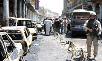 In Baghdad, insurgents fired a shell into a busy street, killing at least seven people including two children. The attack wounded 42 people, leaving pools of blood on sidewalks.