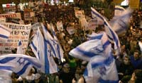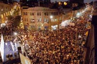 Before heading to Sharon's office to demand the premier's resignation, the crowds gathered in the landmark Zion Square after holding a mass prayer session at the Western Wall in Jerusalem's Old City.