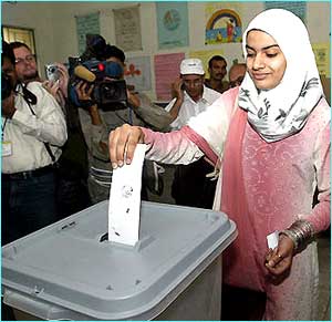 The first person to vote in the historic election is likely to be a woman -- but she will be in Pakistan.