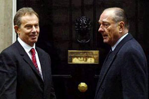 "On the question of Iraq, I think our differences at the time of the conflict are well known. But both of us are now working under UN Resolution 1546, both of us want to see a stable and democratic Iraq, and both of us will do what we can to ensure that happens," Blair told reporters at a joint news conference with visiting French President Jacques Chirac.