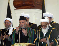 "I am confident and proud that this nation is determined to rebuild Afghanistan and rebuild it fast to live in security and stand on its own feet," said the trimmed-beard Karzai attired in national dress.