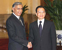 The leaders of the two countries also discussed regional and international issues, including the anti-terrorism campaign and the India-Pakistan peace process, which China welcomes.