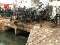 The Karbala blast destroyed about 10 passenger minibuses and set ablaze five cars outside the crowded Bab Baghdad bus station. Hospital officials said 13 people were killed and 33 injured.