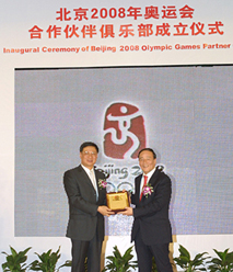 Mr. Wang Qishan, Beijing mayor and the executive president of BOCOG presented at the ceremony the Partner Certificate and Club Membership Card to the Beijing 2008 partners and extended gratitude to them for their vigorous support to the Beijing 2008 Olympic Games.