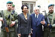 The top US diplomat also said the US would offer the Palestinian National Authority (PNA) US$40 million within the coming three months to create job opportunities and rebuild the Palestinian economy left languid by more than four years of bloodshed.