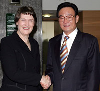 Wu also praised the New Zealand government led by Prime Minister Clark for its efforts to promote the development of bilateral relations. He pointed out that New Zealand is the first Western country to sign a bilateral agreement with China on the latter's membership of the World Trade Organization, recognize China's full market economy status and start negotiations with China on a bilateral free trade agreement.