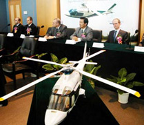 Picture shows the signing ceremony for Cooperation Agreement on A109E Light-Twin Engine Helicopter between China's Chang & Italy's Agusta-Westland in Zhuhai, south China's Guangdong Province, Nov. 6, 2002.