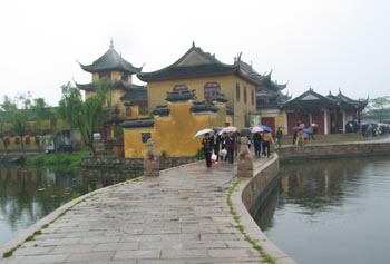 History abounds everywhere. One stone bridge with a wooden railing is known as "The Bridge of Pictures" or "The Red Railing" since it is painted vermilion. This bridge is a reflection of an architectural style that dates back to the Tang Dynasty (618-907).