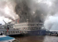 Witness said the fire burst out in a cabin on the fourth floor and quickly spread to the fifth, leaving the whole ship suffused with heavy smoke.