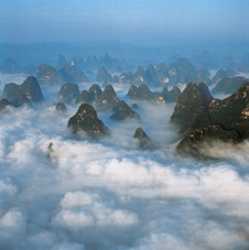 Some people say that Guilin is a mountain city. But compared to the rising and falling landform of the mountainous city of Chongqing, the streets in Guilin are flat. It is a modern city, although hills can be found in the spaces between buildings. The hills in the city rise abruptly, and the river flows casually and silently through it, contributing to the city's special character. It is said that water adds vitality to a city and that hills give it a majestic demeanor. Guilin, fortunately, has been bestowed with both of these qualities.