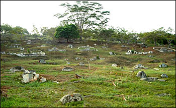 La colline San Bao derrière le temple San Bao fut le premier lieu où les Chinois logèrent à Malaya. 15 440 Chinois y sont ensevelis, c'est le plus grand cimetière des Chinois hors de Chine. Le gouvernement colonial britannique et le gouvernement malaisien ont tenté de réquisitionner cette colline située au centre de la ville de Malacca. Grace aux dons et aux efforts des 2 millions de personnes d'origine chinoise, ce cimetière a été préservé jusqu'à aujourd'hui.