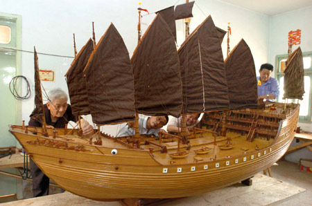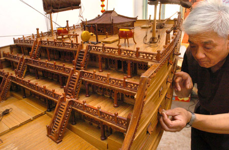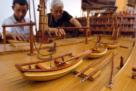 Le modèle con?u par Wei Wenxi est le plus représentatif des modèles sur le bateau précieux de Zheng He jamais exposés, estiment de nombreux experts en bateaux anciens.