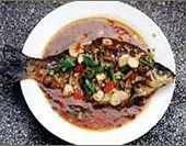 Im chinesischen Originalrezept wird ein "Fettkopffisch" verwendet, was immer das sein mag. Stattdessen eignet sich auch eine Makrele oder ein anderer relativ fester Fisch, der es gut vertr?gt, fritiert zu werden.
