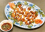 6. In einem Wok das ?l bei m??iger Flamme auf gut 100 Grad erhitzen. Die Fleischspie?e darin braten, bis das Fleisch rundum goldbraun sind. Sofort auf einem Teller mit der Würzmischung servieren.