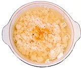 3. Die klare Brühe in einem Kochtopf zum Kochen bringen, 1 g Glutamat, 2 g Salz und die Kleistermischung zu geben. Kurz sieden lassen und danach bei schwachem Feuer 10 Minuten schmoren lassen, bis sich die Mischung verdickt hat und wie ein gelierter Bohnenpudding aussieht.