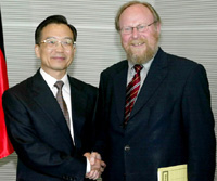 Danach traf Wen Jiabao jeweils mit dem Bundestagspr?sidenten Wolfgang Thierse, der CDU-Vorsitzenden Angela Merkel, dem FDP-Vorsitzenden Guido Westerwelle,