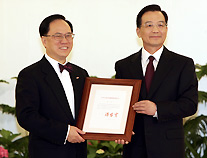 Der chinesische Ministerpr?sident Wen Jiabao hat Tsang anschlie?end seine Ernennungsurkunde überreicht.