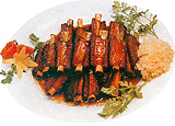 1. Die Rippchen waschen, zwischen den Knochen zerteilen und in 3,3 cm lange St?cke hacken. F?r f?nf Minuten in kaltes Wasser tauchen, gut abtropfen lassen und in eine Sch?ssel legen. Etwas Sojaso?e dar?ber gie?en und darin wenden. Nach 15 Minuten mit einem Tuch oder K?chenkrepp abtrocknen und stehen lassen.