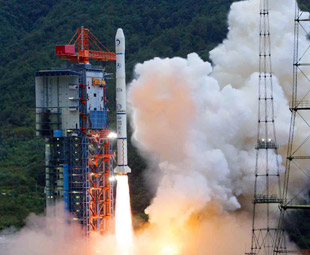 The circumlunar satellite Chang'e-1 blasted off on a Long March 3A carrier rocket at 6:05 p.m. from the No. 3 launching tower in the Xichang Satellite Launch Center of southwestern Sichuan Province.