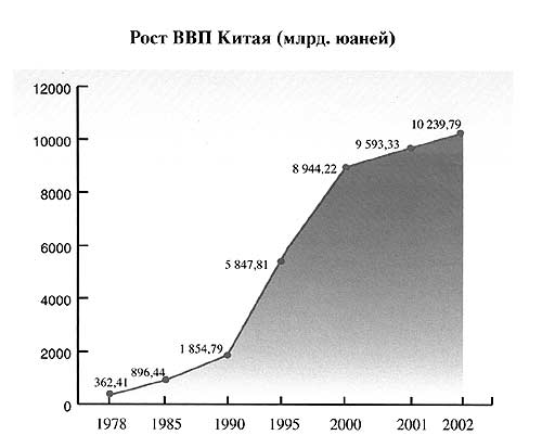 К 2002 г. достигнуты заметные успехи в проведении реформ во всех областях. Сегодня в Китае в первоначальном виде создана система социалистической рыночной экономики, заметно укрепляется основная роль рынка в распределении ресурсов, совершенствуются контуры системы макроконтроля. В основном сформирована структура совместного развития разных экономических секторов при сохранении главной роли общественной собственности, совершается постепенный переход от экстенсивных к интенсивным методам роста экономики. Предполагается, что к 2010 г. в Китае сформируется сравнительно совершенная система социалистической рыночной экономики, а к 2020 г. — сравнительно зрелая система социалистической рыночной экономики.