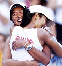 Las chinas Tian Tian Sun y Ting Li conquistaron una medalla de oro más para su país al imponerse a las espa?olas Conchita Martínez y Virginia Ruano en la final de dobles femenil de tenis.