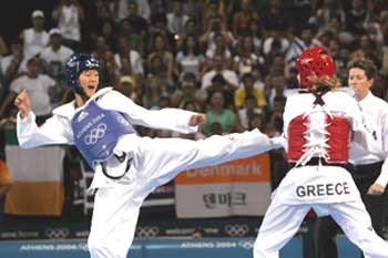 La china Luo Wei ganó esta noche la medalla de oro en taekwondo de menos de 67kg femenil en los Juegos Olímpicos de Atenas.