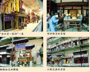 Esta "calle del viejo Beijing", de 100 metros de largo y réplica de la ciudad de los a?os 1920 y 1930, tiene tiendas de frutas frescas y secas, de pieles y gorros de piel, de cigarrillos, casas de empe?o, joyerías, tiendas de curiosidades y arcos de tama?os y formas variados, además de letreros y rótulos diversos. Incluso tiene mercados, casas de té, monasterios, teatros de ópera, casas con patios, postes de cables eléctricos, anuncios y carteles en las paredes, y hasta utensilios para las faenas cotidianas. Y también contiene medios de transporte de los viejos tiempo como rikshas, palanquines, carretas de venta de agua, carreteas de vendedores ambulantes. En fin, no es una exageración afirmar que esta calle es un retrato condensado del viejo Beijing en todos sus oficios y facetas.