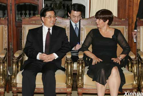 El presidente chino Hu Jintao, quien se encuentra de visita de Estado en Brasil, se reunió el día 13 por la noche en el Estado de Río de Janeiro con su gobernadora Rosinha Garotinho.