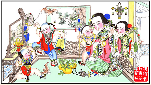 Las estampas de A?o Nuevo de grabados de madera de Yangliuqing, producidas en el distrito de Yangliuqing, en las afueras de Tianjin, constituyen un precioso producto artístico floklórico de estilo artístico peculiar y fuerte característica local. Aparecidas durante el reinado de Chongzhen (1628-1644) de la dinastía Ming, estos grabados eran muy populares durante los reinados de Yongzheng y Qianlong (1723-1795) y llegaban tener varios miles de tipos. Durante el periódo de su apogeo, Yangliuqing era realmente un pueblo de pinturas en cuyas más de 30 aldeas “todas las familias sabían pintar” y comerciantes de pinturas visitaban a las hileras e hileras de tiendas de pinturas.