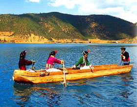 5. Lago Lugu en la provincia de Yunnan: Al acercarse a este lago, uno siente entrar al mundo de las hadas. Los lagos, tan azules como el mar, están rodeados de monta?as. Las aldeas viejas en las inmediaciones y sus moradores nos recuerdan la sociedad primitiva.