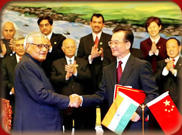Del 22 al 27 de junio de 2003 el primer ministro indio Atal Valpaye visitó China. El día 23 firmó con su homólogo chino la “ Declarción de la R. P China y de la República de la India sobre los principios que rigen sus relaciones y sobre la cooperación general ”. Los dos gobiernos firmaron además diez acuerdos relacionados con diferentes dominios de sus relaciones bilaterales. La firma de la Declaración presagió que las relaciones sino – indianas se librarían del estado de inestabilidad y entrarían en un período totalmente nuevo de interacción virtuosa de cooperación general. |