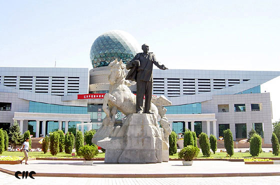 Escultura en memoria de Wang Zhen, en la plaza de Shihezi