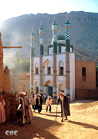 Mezquita en la hondonada Tuyugou, en Shanshan