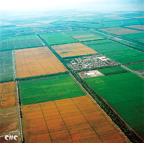 Franjas de campos de cultivo del regimiento 145 en Shihezi